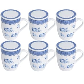Conteúdo: 6 xícaras de porcelana, 6 tampas herméticas e 6 filtros;