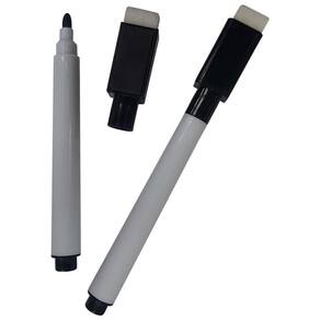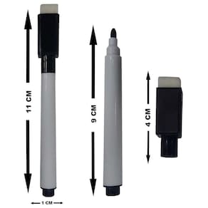 60 Canetas Para Quadro Branco Com Apagador E Imã Cor da tinta: Preto Todas as canetas possuem a tinta e a tampa de cor preta, na ponta da tampa encontra-se uma espuma para apagar e na lateral um imã que permite que grudem em superfícies metálicas.