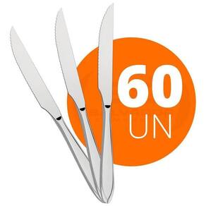 OBS: Veja na descrição os itens que acompanham o jogo. COMPONENTES DO KIT: 60 Faca para Churrasco Laguna em Aço Inox - Tramontina 63906180 : 90 dias para vícios ou defeitos de fabricação - Ideal para Restaurante, Lancheria, Padaria, Linha Doméstica, Residência, Gourmet; - Na hora de apreciar aquele churrasco irresistível, esteja com os utensílios corretos. Com a Faca para Churrasco Tramontina Laguna em Aço Inox sua refeição vai ser ainda mais agradável. - Isso porque a peça apresenta durabilidade no fio de corte e resistência à corrosão, além de não riscar as porcelanas e proporcionar beleza e comodidade na sua utilização, já que a peça oferece acabamento em brilho e pode ser levada diariamente à máquina de lavar. - Faca totalmente temperada, que garante maior durabilidade no fio de corte e maior resistência à corrosão, e por sua característica de temperabilidade, não risca as porcelanas. - Totalmente feita de aço inox, mantém suas características , preservando a beleza, a higiene e a durabilidade do material. - Acabamento em brilho, com detalhes no cabo. - Própria para uso diário combina com qualquer ambiente. - Pode ser lavada diariamente na máquina de lavar louças. - Peso Líquido: 0,043 kg. - Peso Bruto: 0,045 kg. - Dimensões Embalagem : 0,8cm A x 2cm L x 23cm P - Dimensões Produto : 0,3cm A x 1,8cm L x 21cm P - Espessura: 3,0 mm.
