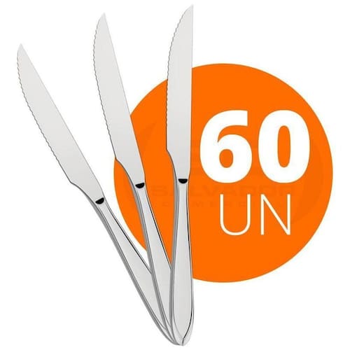 OBS: Veja na descrição os itens que acompanham o jogo. COMPONENTES DO KIT: 60 Faca para Churrasco Laguna em Aço Inox - Tramontina 63906180 : 90 dias para vícios ou defeitos de fabricação - Ideal para Restaurante, Lancheria, Padaria, Linha Doméstica, Residência, Gourmet; - Na hora de apreciar aquele churrasco irresistível, esteja com os utensílios corretos. Com a Faca para Churrasco Tramontina Laguna em Aço Inox sua refeição vai ser ainda mais agradável. - Isso porque a peça apresenta durabilidade no fio de corte e resistência à corrosão, além de não riscar as porcelanas e proporcionar beleza e comodidade na sua utilização, já que a peça oferece acabamento em brilho e pode ser levada diariamente à máquina de lavar. - Faca totalmente temperada, que garante maior durabilidade no fio de corte e maior resistência à corrosão, e por sua característica de temperabilidade, não risca as porcelanas. - Totalmente feita de aço inox, mantém suas características , preservando a beleza, a higiene e a durabilidade do material. - Acabamento em brilho, com detalhes no cabo. - Própria para uso diário combina com qualquer ambiente. - Pode ser lavada diariamente na máquina de lavar louças. - Peso Líquido: 0,043 kg. - Peso Bruto: 0,045 kg. - Dimensões Embalagem : 0,8cm A x 2cm L x 23cm P - Dimensões Produto : 0,3cm A x 1,8cm L x 21cm P - Espessura: 3,0 mm. Marca: Não Informado