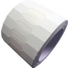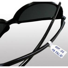 Etiqueta em papel adesivo para uso manual Fabricadas em papel adesivo branco fosco Enlaça o produto dobrando-a ao meio e unindo as pontas Possui cola em toda a extensão da etiqueta
