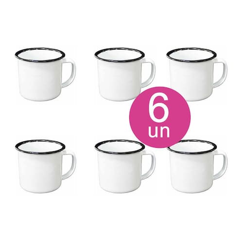 6un CANECA ESMALTADA TRADICIONAL BRANCA 600ml café xícara