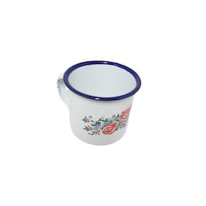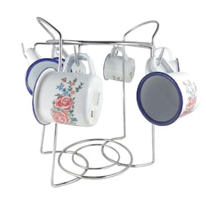 Este Kit contém: 6 CANECAS ESMALTADA BRANCA FLORES 150ml + SUPORTE P/ 6 XÍCARAS