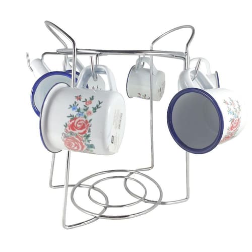 As canecas esmaltadas, são rusticas e perfeitas para um ambiente aconchegante. Seu material esmaltado é utilizado há muitos anos e é excelente para manter a temperatura e qualidade das bebidas, além de ser um objeto decorativo, como ar retrô dos itens de esmaltado é uma tendência e não tem como errar em ter uma dessas em casa. Acompanham um lindo suporte para deixar as xícaras sempre organizadas na sua cozinha