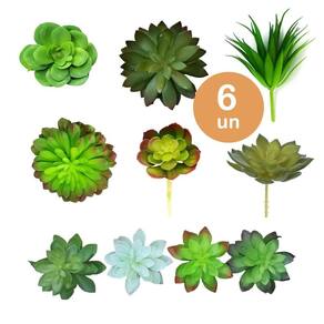 6un planta suculenta artificial decoração vasinhos arranjos 6un planta suculenta artificial para decoração vasinhos arranjos Este kits contém: 6 plantas suculentas artificiais são enviados modelos Não acompanha vasos e/ou cachepots As suculentas são ideais para decoração de mini vasos, cachepots, jardins artificiais com muita realidade e naturalidade. Ideal para harmonizar em qualquer ambiente como, mesas e bancadas de cozinha, escritórios, banheiros e onde mais sua imaginação permitir. Fabricadas com material de excelente qualidade, plastico siliconado, transmitem realidade, parecendo plantas reais com grande durabilidade Não acompanha vasos e/ou cachepots Medida de cada plantinha: os tamanhos podem variar de acordo com o modelo entre variam de 5 a 10cm. Material: plastico siliconado e metal As hastes semi rígidas permitem que possam ser fixadas em diferentes bases, mantendo seu arranjo sempre bonito e arrumado. Marca: Não Informado