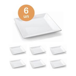 6UN PRATO MELAMINA QUADRADO BRANCO 20CM SOBREMESA PETISCOS