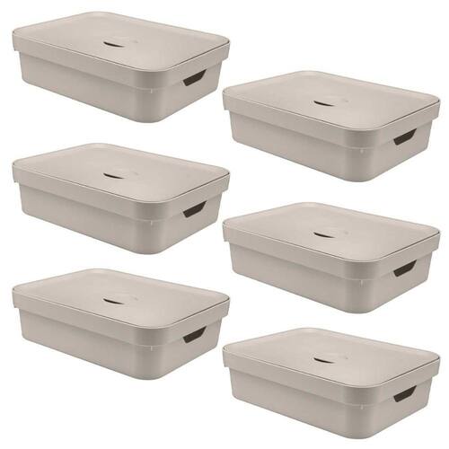 - 06 Caixa Plástica Organizadora Uo Cube Tamanho Grande 16 Litros Bege