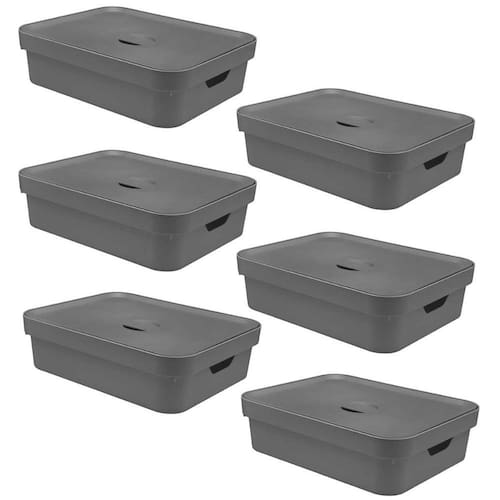 - 06 Caixa Plástica Organizadora Uo Cube Tamanho Grande 16 Litros Cinza