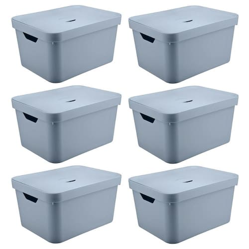 6X Caixa Plastica Grande 32L Ou Cube Organizadora Azul
