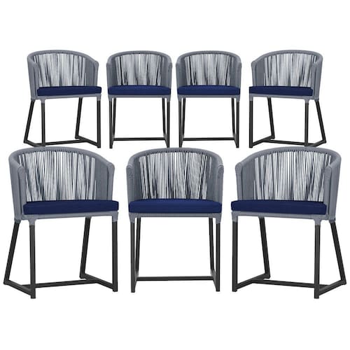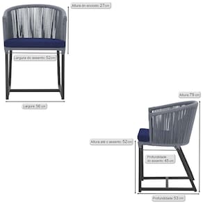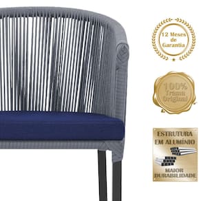 Combinando estilo e resistência, esta cadeira traz o melhor do design contemporâneo em alumínio com micro pintura e acabamento em corda náutica. O estofado impermeável completa o conforto e a funcionalidade, tornando-a ideal para ambientes externos e internos.