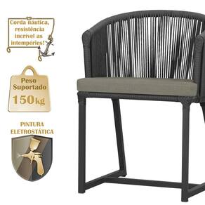 Combinando estilo e resistência, esta cadeira traz o melhor do design contemporâneo em alumínio com micro pintura e acabamento em corda náutica. O estofado impermeável completa o conforto e a funcionalidade, tornando-a ideal para ambientes externos e internos.
