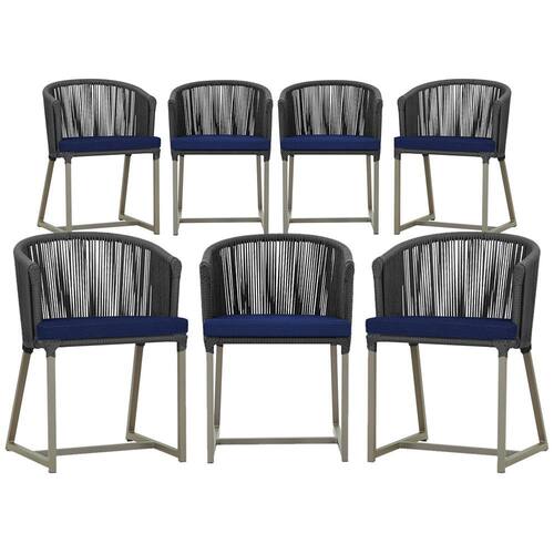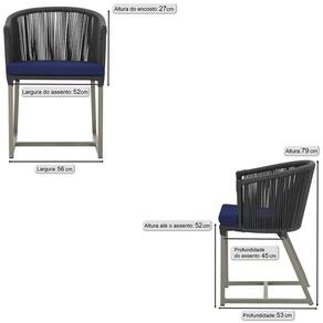 Combinando estilo e resistência, esta cadeira traz o melhor do design contemporâneo em alumínio com micro pintura e acabamento em corda náutica. O estofado impermeável completa o conforto e a funcionalidade, tornando-a ideal para ambientes externos e internos.