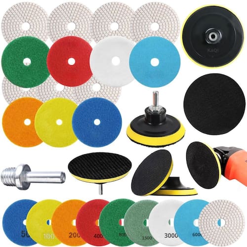 7 Lixas 4 Pol. 100mm Diamantada Grão + 1 Disco Prato Suporte + 1 Pino M14 Granito Mármore KaQi GRÃO: 100-200x2-400x2-800x2 7 Lixas Diamantadas Grão Disco 4 Polegadas 100mm KaQi. + 1 Disco Prato Suporte Redondo 4 Pol. 100mm Rosca M14 KaQi. + 1 Pino Adaptador Aço Carbono Rosca M14 KaQi. Compatível com Furadeira, Parafusadeira, Politriz, Lixadeira, Esmerilhadeira. Para Desbaste, Polimento, Acabamento. Lixamentos Seco e Úmido. Ideal para profissionais e entusiastas de reformas e construção. Alta qualidade, resistência e desempenho superior. Transforme o acabamento das suas superfícies com as Lixas Diamantadas 4 Polegadas 100mm da KaQi + Disco Suporte Prato 4 Polegadas 100mm + Pino Adaptador M14 Desenvolvida para oferecer o melhor polimento e acabamento, é perfeito para quem busca resultados profissionais, tanto em pedras como granitos, mármores, cerâmicas, quanto, ardósia, calcário, dekton, quartzo, porcelanato, pedra projetada, concreto, nanoglass, super nano, vidro e muito mais. Seu lixamento pode ser a seco e a úmido, o que proporciona um processo mais rápido, sem gerar calor excessivo. Assim, é possível garantir um resultado sem manchas ou falhas, e ainda favorece um efeito brilho d'água incrível Principais características: 1. Durabilidade Extra, alta resistência ao desgaste, longa vida útil e desempenho, além de excelente performance em diversos tipos de materiais. 2. Acabamento Impecável no desbaste e polimento de superfícies de pedra, mármore, calcário, ardósia, porcelanato e outros, sem deixar manchas ou marcas indesejadas. Pode ser trabalhada em superfícies claras ou escuras. Oferece uma remoção eficiente de material e um acabamento uniforme. 3. Versatilidade no uso com diversas ferramentas, já que pode ser Utilizado em esmerilhadeiras, lixadeiras, politrizes e furadeiras elétricas. 4. Eficiência de Montagem, uma vez que possui sistema de fixação tipo vellcro, basta encostar a lixa no suporte do disco para grudar, e, para remover, é só puxar na direção contrária. 5. A lixa diamantada é a escolha perfeita para quem busca resultados de alta qualidade em projetos de marmoraria, granito, granilite, porcelanato, cerâmica e muito mais. Não perca a chance de ter um acabamento impecável em suas reformas e projetos. Por que escolher um produto KaQi Facilidade de uso: O sistema de vellcro para fixação da lixa facilita a troca rápida e segura, além de funcionamento em elevado RPM sem soltar. Devido à flexibilidade, aceita trabalhos em superfícies planas, côncavas, convexas e bordas. Muito comumente utilizada para bancadas, boleados, pias, rodapés, etc. Eficiência : Ideal para trabalhos de polimento e acabamento em pedras, pisos e demais superfícies ásperas ou duras. Compatibilidade: permite uso em esmerilhadeiras, politrizes, parafusadeiras e lixadeiras. Especificações: 7 Lixas DÁgua 4 Pol. 100mm Disco Diamantado KaQi GRÃO. + 1 Disco Prato Suporte Redondo 4 Pol. 100mm M14 KaQi. + 1 Pino Adaptador M14 4,4cm altura x 8,8mm largura x 14mm rosca KaQi. Diâmetro lixas: 100mm 4 Polegadas . Furo central lixas: 1,3cm diâmetro. Espessura lixa 1 unidade: aproximadamente 0,5cm. Maleabilidade: flexível. Lixamentos: seco e úmido. RPM: ideal entre 2500 a 5000 rotações por minuto. Material da lixa: diamante sintético industrial e resina premium. Costado: tipo vellcro. Fácil de fixar e remover. Medidas da caixa: 10cm x 10cm x 10cm. Peso da caixa: 0,45kg. Marca: KaQi Magazine Girassol . : 3 Meses.