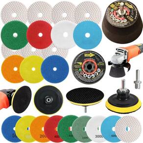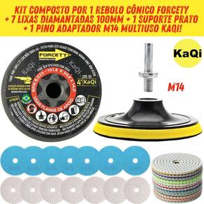 7 Lixas Grão 4 Pol. 100mm Diamantada + 1 Rebolo Cônico 45 Graus + 1 Disco Prato + 1 Pino M14 KaQi Kit 7 Lixas Diamantadas Grão Disco 4 Polegadas 100mm KaQi + 1 Rebolo Grão 120 Copo Cônico 45 Graus 4 Polegadas M14 Forcety. + 1 Suporte Prato Disco 100mm M14 KaQi + 1 Pino Adaptador Multiuso Rosca Universal M14 KaQi. Para Desbastes, Polimentos, Acabamentos, Boleamentos, Lixamentos a Seco e Úmido. Ideal para profissionais e entusiastas de reformas e construção. Transforme o acabamento das suas superfícies com o Kit 7 Lixas Grão 4 Pol. 100mm Diamantada + 1 Rebolo Cônico 45 Graus + 1 Disco Prato + 1 Pino M14 Desenvolvido para oferecer o melhor polimento e acabamento, é perfeito para quem busca resultados profissionais, tanto em pedras como granitos, mármores, cerâmicas, quanto ardósia, calcário, dekton, quartzo, porcelanato, pedra projetada, concreto, nanoglass, super nano, vidro e muito mais. Seu lixamento pode ser a seco e a úmido, o que proporciona um processo mais rápido, sem gerar calor excessivo. Assim, é possível garantir um resultado sem manchas ou falhas, e ainda favorece um efeito brilho d'água incrível O Rebolo Copo Cônico 10x5cm Grão 120 Forcety é ideal para desbastes, retificações, boleamentos e acabamentos. Projetado para oferecer eficiência, durabilidade, confiabilidade e resultados excepcionais, é perfeito para profissionais e entusiastas de reformas e construções. Não à toa, é o rebolo número 1 das marmorarias, azulejistas e oficinas de todo Brasil O Disco 100mm e o pino adaptador M14 podem ser utilizados em conjunto com as lixas e com o rebolo. Com sistema de gruda e desgruda fácil, podem utilizadas em lixadeiras, esmerilhadeiras, politrizes, furadeiras, parafusadeiras. Permite, assim, ampliar a gama de usos do kit. Principais características: 1. Durabilidade extra, alta resistência ao desgaste, longa vida útil e desempenho, além de excelente performance em diversos tipos de materiais. 2. Acabamento impecável no desbaste e polimento de superfícies de pedra, mármore, calcário, ardósia, porcelanato e outros, sem deixar manchas ou marcas indesejadas. Pode ser trabalhada em superfícies claras ou escuras. Oferece uma remoção eficiente de material e um acabamento uniforme. 3. Versatilidade no uso com diversas ferramentas, já que pode ser Utilizado em esmerilhadeiras, lixadeiras, politrizes e furadeiras elétricas. 4. Eficiência de montagem, uma vez que possui sistema de fixação rápido. Basta encostar a lixa no suporte do disco para grudar, e, para remover, é só puxar na direção contrária. Conteúdo da embalagem: 7 Lixas DÁgua 4 Pol. 100mm Disco Diamantado KaQi GRÃO. + 1 Rebolo Grão 120 Copo Cônico 45 Graus 4 Polegadas M14 Forcety. + 1 Suporte Prato Disco 100mm M14 KaQi + 1 Pino Adaptador Multiuso Rosca Universal M14 KaQi. Especificações Lixas: Diâmetro: 100mm 4 Polegadas . Furo central: 1,3cm diâmetro. Espessura 1 unidade: 0,4cm. Maleabilidade: flexível. Lixamentos: seco e úmido. RPM: ideal entre 3000 a 5000 rotações por minuto. Material da lixa: diamante sintético industrial e resina premium. Costado: tipo vellcro. Fácil de fixar e remover. Especificações Rebolo: Trabalho: a seco ou refrigerado com água. Diâmetro: 4 Polegadas 100mm 10,16cm x altura 5,08cm. Velocidade: 9023RPM. Rosca: M14. Material: Carbeto de Silício SiC com diamantes. Feito para ser conforme norma ABNT NBR 15230. Especificações Prato Suporte: Diâmetro do disco: 100mm 4 Polegadas . Modelo do disco: M14 com superfície tipo vellcro. RPM: até 12000. Rosca: padrão M14 14mm . Especificações Pino Adaptador M14: Para Furadeira Parafusadeiras, Politrizes, Lixadeiras e Esmerilhadeiras. Fixa em discos pratos M14 para uso com lixas, boinas, espumas de polir, entre outros acessórios. Rosca: M14 14mm . Pino largura: 8mm. Altura: 4,4cm.