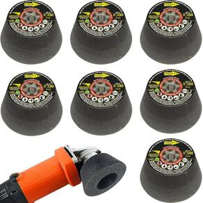 7 rebolos copo cônico 4 polegadas grão 120 rosca m14 mármore porcelanato granito forcety 7 rebolos copo cônico 4 polegadas grão 120 rosca m14 forcety. Rotação máxima 9023 rpm. Medidas 10,16cm x 5,08cm. Para trabalhos a seco ou refrigerados com água. Indicado para desbastes, retificações, acabamentos e boleamentos. O rebolo copo cônico 10x5cm grão 120 forcety é ideal para desbastes, retificações, boleamentos e acabamentos em mármores, granitos, ardósias, porcelanatos, granilites, cerâmicas, entre diversos outros materiais rochosos. Projetado para oferecer eficiência, durabilidade, confiabilidade e resultados excepcionais, é perfeito para profissionais e entusiastas de reformas e construções. Não à toa, é o rebolo número 1 das marmorarias, azulejistas e oficinas de todo brasil O rebolo cônico 4 polegadas forcety é fabricado com diamantes industriais premium e carbeto de silício sic , uma cerâmica fina sintética e semicondutora que se destaca em uma ampla gama de artigos do mercado industrial. Conta com a qualidade e a de fábrica forcety, empresa brasileira, a qual tem como compromisso, a excelência e qualidade na fabricação de seus produtos. Proporciona assim, não apenas um desempenho eficaz, mas também, a confiança no respaldo de uma marca brasileira, reconhecida em todo território nacional. A rosca do rebolo forcety segue no padrão universal m14, a qual permite uma fácil e simples instalação em lixadeiras, esmerilhadeiras e politrizes. Basta rosquear e a instalação está concluída. Caso seja utilizada em conjunto com um adaptador pino m14 não incluso é possível conectar também em furadeiras e parafusadeiras. Em alguns lugares é chamado de pé de burro, ou ainda, de copo cônico de desbaste. O nome varia de acordo com a região do brasil. Independente do nome, só uma certeza: o rebolo forcety é versátil e poderoso corrige imperfeições do corte, arredonda bordas, faz boleamentos, remove arestas vivas e cria acabamentos suaves. Pode trabalhar a seco ou refrigerado a água, o que proporciona um processo mais rápido, sem gerar calor excessivo. Dessa forma, seja no desbaste, no boleamento ou no polimento, o rebolo forcety é a melhor opção. Benefícios: 1. Versatilidade: utilização em ampla variedade de materiais rochosos. Atende ao mais diversos projetos. 2. Desempenho superior e inigualável: o carbeto de silício com diamantes garante um desempenho de desbaste inigualável e duradouro. 3. Fácil adaptação: rosca padrão m14 com compatibilidade universal às mais diversas lixadeiras, esmerilhadeiras, politrizes, elétricas ou pneumáticas, entre outras máquina com conexão m14. 4. de fábrica: respaldado e de fábrica forcety, o que proporciona tranquilidade, comodidade e segurança. Especificações: 7 rebolos copo cônico 4 polegadas m14 grão 120. Trabalho: a seco ou refrigerado com água. Diâmetro: 4 polegadas 100mm 10,16cm x altura 5,08cm. Velocidade: 9023rpm. Rosca: m14. Material: carbeto de silício sic com diamantes. Feito para ser conforme norma abnt nbr 15230. Peso unitário: 0,55kg. Medidas unitário: 10 x 10 x 5cm. Marca: forcety. : 3 meses. Recomendações importantes antes do uso: Verificar se o rebolo está bem fixo ao equipamento; Verificar se a seta indicativa do disco coincide com o sentido de giro do equipamento; Desbaste sem forçar muito o rebolo e aplique força só conforme a necessidade; Utilizar preferencialmente em bases fixas; Compatível com as principais marcas de ferramentas do mercado. Utilize sempre epi para trabalhos com mais segurança. Confira o grão desejado, antes de concluir a compra. Não fazemos alterações posteriores em pedidos. Imagens do anúncio são ilustrativas.