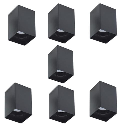 7 Spot Quadrado De Sobrepor Preto Direcionavel Gu10 Zan38