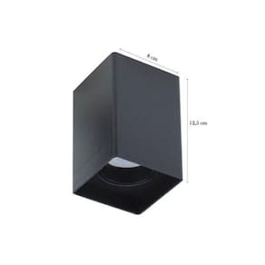 Spot sobrepor recuado direcionável quadrado preto, peça ideal para destacar seu ambiente. Possui sistema click, no qual não é necessário retirar o spot para troca de lâmpada.-- Neste kit contém 7 spot -- Descrição:- Material: Policarbonato- Cor: Preto- Dimensões: Comprimento: 8 cm Largura: 8 cm Altura: 12,5 cm- Tipo de lâmpada: MR16 LED- Soquete: GU10- Potência máxima: 40W- Tensão: 100V - 240V- Grau de Proteção: IP20- Frequência: 50/60HZ- Direcionável- Acompanha soquete Gu10 Não acompanha lâmpada