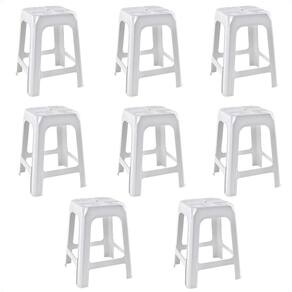 8 Banquetas Banco Plástico Resistente Branco Empilhável 46Cm