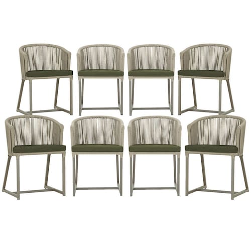 Combinando estilo e resistência, esta cadeira traz o melhor do design contemporâneo em alumínio com micro pintura e acabamento em corda náutica. O estofado impermeável completa o conforto e a funcionalidade, tornando-a ideal para ambientes externos e internos.