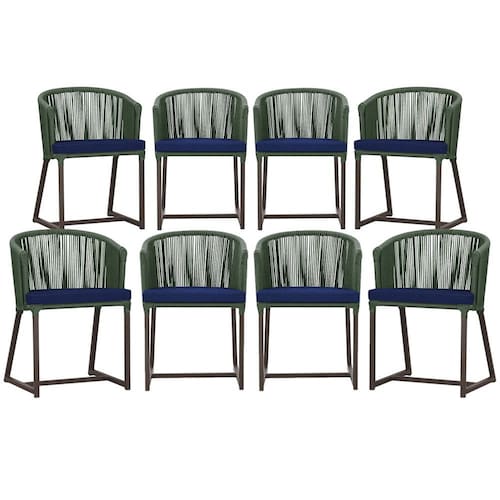 8 Cadeiras de Jantar Área Noronha em Alumínio - Verde Musgo