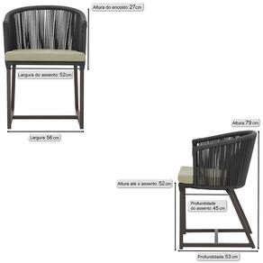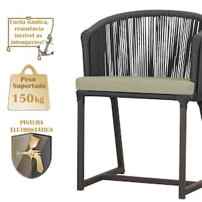 Combinando estilo e resistência, esta cadeira traz o melhor do design contemporâneo em alumínio com micro pintura e acabamento em corda náutica. O estofado impermeável completa o conforto e a funcionalidade, tornando-a ideal para ambientes externos e internos.