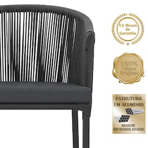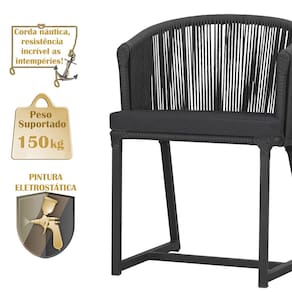 Combinando estilo e resistência, esta cadeira traz o melhor do design contemporâneo em alumínio com micro pintura e acabamento em corda náutica. O estofado impermeável completa o conforto e a funcionalidade, tornando-a ideal para ambientes externos e internos.