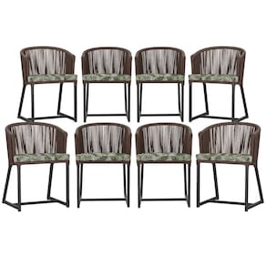 Combinando estilo e resistência, esta cadeira traz o melhor do design contemporâneo em alumínio com micro pintura e acabamento em corda náutica. O estofado impermeável completa o conforto e a funcionalidade, tornando-a ideal para ambientes externos e internos.