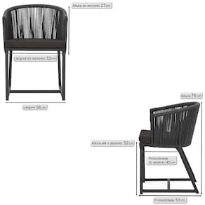 Fotos meramente ilustrativas. Tonalidades podem variar dependendo do monitor. Os objetos que ambientam as Fotos nao acompanham o produto. Antes de comprar o seu produto verifique as medidas, o onde pretende instalar e se necessario contratar o servico de um qualificado. Produto conhecido como: Cadeira Noronha, Cadeira de aluminio, Corda nautica, Estofado impermeavel, Moveis de exterior, Cadeira resistente a agua, Design moderno em Cadeira, Cadeira para area externa, Cadeira de jardim, Moveis para varanda, Cadeira duravel, Cadeira de alta qualidade, Conforto em Cadeira, Cadeira elegante.
