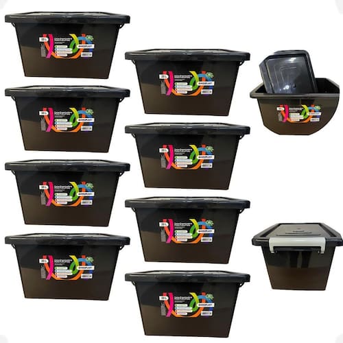 Caixa organizadora preta 20l empilhável trava e rodizio