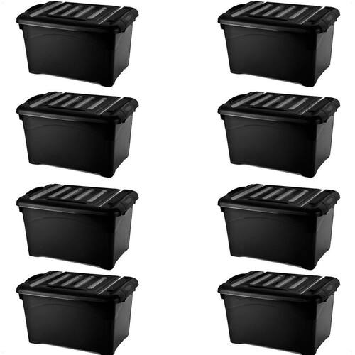 8 caixas organizadoras 25 litros preta com travas e rodinhas 8 caixas organizadoras 25l black com travas e rodinhas