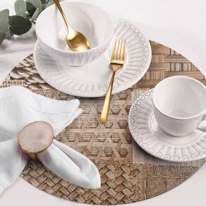 SUA MESA MAIS BONITA E ELEGANTE EM TODOS OS MOMENTOS Além de proporcionar um excelente efeito visual à mesa, ele combina bem com diversos tipos de louças, mesas e ambientes. Não retém resíduos de alimentos proporcionando praticidade para o dia a dia. VANTAGENS - Prático; - Versátil; - Flexível - Resistente; - Impermeável; - Fácil de guardar; - Fácil de limpar: basta passar um pano úmido e sabão neutro; Contém 8 peça(s) MATERIAL: PVC DIMENSÕES: - Diâmetro: 38cm (Redondo) - Espessura: 0,1cm Somos fabricantes, por isso o melhor preço para esse produto. Um produto Idealiza Comercio de Utilidades Ean: 7908430157505