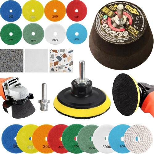 8 Lixas Grão 4 Pol. 100mm Diamantada + 1 Rebolo Cônico 45 Graus + 1 Disco Prato + 1 Pino M14 KaQi Kit 8 Lixas Diamantadas Grão Disco 4 Polegadas 100mm KaQi + 1 Rebolo Grão 120 Copo Cônico 45 Graus 4 Polegadas M14 Forcety. + 1 Suporte Prato Disco 100mm M14 KaQi + 1 Pino Adaptador Multiuso Rosca Universal M14 KaQi. Para Desbastes, Polimentos, Acabamentos, Boleamentos, Lixamentos a Seco e Úmido. Ideal para profissionais e entusiastas de reformas e construção. Transforme o acabamento das suas superfícies com o Kit 8 Lixas Grão 4 Pol. 100mm Diamantada + 1 Rebolo Cônico 45 Graus + 1 Disco Prato + 1 Pino M14 Desenvolvido para oferecer o melhor polimento e acabamento, é perfeito para quem busca resultados profissionais, tanto em pedras como granitos, mármores, cerâmicas, quanto ardósia, calcário, dekton, quartzo, porcelanato, pedra projetada, concreto, nanoglass, super nano, vidro e muito mais. Seu lixamento pode ser a seco e a úmido, o que proporciona um processo mais rápido, sem gerar calor excessivo. Assim, é possível garantir um resultado sem manchas ou falhas, e ainda favorece um efeito brilho d'água incrível O Rebolo Copo Cônico 10x5cm Grão 120 Forcety é ideal para desbastes, retificações, boleamentos e acabamentos. Projetado para oferecer eficiência, durabilidade, confiabilidade e resultados excepcionais, é perfeito para profissionais e entusiastas de reformas e construções. Não à toa, é o rebolo número 1 das marmorarias, azulejistas e oficinas de todo Brasil O Disco 100mm e o pino adaptador M14 podem ser utilizados em conjunto com as lixas e com o rebolo. Com sistema de gruda e desgruda fácil, podem utilizadas em lixadeiras, esmerilhadeiras, politrizes, furadeiras, parafusadeiras. Permite, assim, ampliar a gama de usos do kit. Principais características: 1. Durabilidade extra, alta resistência ao desgaste, longa vida útil e desempenho, além de excelente performance em diversos tipos de materiais. 2. Acabamento impecável no desbaste e polimento de superfícies de pedra, mármore, calcário, ardósia, porcelanato e outros, sem deixar manchas ou marcas indesejadas. Pode ser trabalhada em superfícies claras ou escuras. Oferece uma remoção eficiente de material e um acabamento uniforme. 3. Versatilidade no uso com diversas ferramentas, já que pode ser Utilizado em esmerilhadeiras, lixadeiras, politrizes e furadeiras elétricas. 4. Eficiência de montagem, uma vez que possui sistema de fixação rápido. Basta encostar a lixa no suporte do disco para grudar, e, para remover, é só puxar na direção contrária. Conteúdo da embalagem: 8 Lixas DÁgua 4 Pol. 100mm Disco Diamantado KaQi GRÃO. + 1 Rebolo Grão 120 Copo Cônico 45 Graus 4 Polegadas M14 Forcety. + 1 Suporte Prato Disco 100mm M14 KaQi + 1 Pino Adaptador Multiuso Rosca Universal M14 KaQi. Especificações Lixas: Diâmetro: 100mm 4 Polegadas . Furo central: 1,3cm diâmetro. Espessura 1 unidade: 0,4cm. Maleabilidade: flexível. Lixamentos: seco e úmido. RPM: ideal entre 3000 a 5000 rotações por minuto. Material da lixa: diamante sintético industrial e resina premium. Costado: tipo vellcro. Fácil de fixar e remover. Especificações Rebolo: Trabalho: a seco ou refrigerado com água. Diâmetro: 4 Polegadas 100mm 10,16cm x altura 5,08cm. Velocidade: 9023RPM. Rosca: M14. Material: Carbeto de Silício SiC com diamantes. Feito para ser conforme norma ABNT NBR 15230. Especificações Prato Suporte: Diâmetro do disco: 100mm 4 Polegadas . Modelo do disco: M14 com superfície tipo vellcro. RPM: até 12000. Rosca: padrão M14 14mm . Especificações Pino Adaptador M14: Para Furadeira Parafusadeiras, Politrizes, Lixadeiras e Esmerilhadeiras. Fixa em discos pratos M14 para uso com lixas, boinas, espumas de polir, entre outros acessórios. Rosca: M14 14mm . Pino largura: 8mm. Altura: 4,4cm.