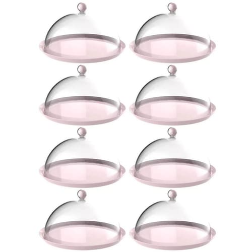 8 Porta Bolo Rosa Himalaia 30cm com Cúpula Bubble Crippa Boleira Torta Doces
