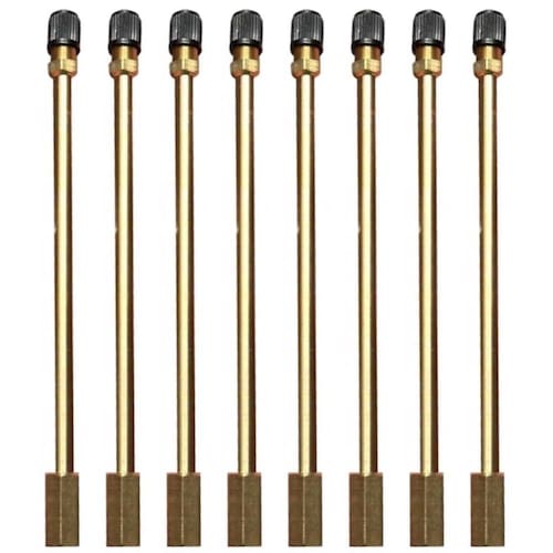 Feito em metal; Utilizado para facilitar o enchimento e calibragem de pneus; Alcance estendido. Kit composto: 8 Unidades