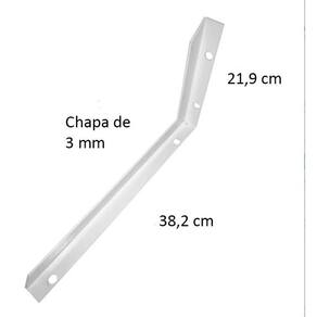Você tem ideia nos inúmeros lugares que pode utilizar uma mão francesa A mão francesa pode ser utilizada em prateleiras, mesas, suportes, bancadas, vidros, entre outros. Nossas mãos francesas são muito resistentes, aguentando até 50 kg por suporte. Acompanha 16 dezesseis parafusos e 16 dezesseis buchas Nº8 por suporte. Informações Técnicas: Cor: Branca Resistencia: até 50 kg por suporte Dimensão: 38,2cm x 21,9cm Espessura da Chapa: 3mm OBS: Recomenda-se espaçamento máximo entre os suportes de 50cm. Inclui no kit: - 8x Mão francesa Suporte - 16x Parafusos 5,0 x 40mm - 16x Buchas 8mm