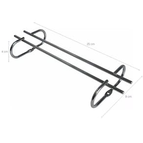 Garantia: 90 dias / Peso: 130g / Cor: Cromado / Ref: 83011X8 Dimensões: 25cm (C) x 9cm (L) x 4cm (A) Diâmetro máximo da base das taças: 7cm. Cuidados: Não lavar com materiais abrasivos. Capacidade: Varia conforme o diâmetro da base de suas taças. Conteúdo: 8 suportes. Distância entre os furos de fixação: 19cm Fixação: Através de dois parafusos, os mesmos não acompanham o produto.