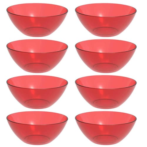 Conjunto com 8 Tigelas Pequenas Vermelhas Transparentes Crippa, Travessa Redonda de 2,3L Perfeitas para Restaurantes. Estas tigelas são ideais para servir porções de saladas frescas, sobremesas ou acompanhamentos com elegância e praticidade. Seu design moderno e vibrante na cor vermelha transparente traz um toque de sofisticação à mesa, encantando os clientes. Com capacidade de 2,3L, oferecem porções generosas, adequadas tanto para uso individual quanto para servir pequenas porções em pratos principais. Fabricadas em material resistente e fácil de limpar, essas tigelas são a solução perfeita para o dia a dia de restaurantes que buscam qualidade, durabilidade e estilo.