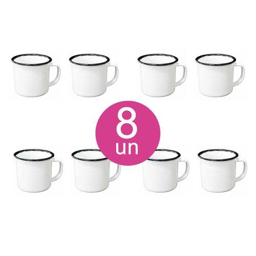 8un CANECA ESMALTADA TRADICIONAL BRANCA 600ml café xícara