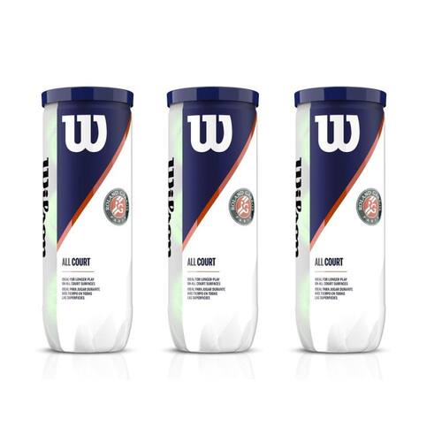 Bola de Tênis Roland Garros All Court A bola de tênis Wilson Roland Garros All Court possui as características essenciais da bola oficial usada em Roland Garros para uma bola projetada para desempenho superior em todos os tipos de quadra. Apresentando uma composição projetada para disputas mais longas e um feltro que resiste habilmente as raspadas tipicamente de quadras duras, a bola Wilson Roland Garros All Court têm o desempenho adequado para os melhores jogadores do esporte. A Wilson é a Bola Oficial e o Encordoador Oficial de Roland Garros. Como patrocinadora oficial do grand slam, a Wilson se consolida como líder nos maiores espetáculos do esporte. 3 tubos com 3 bolas cada Total 9 bolas