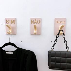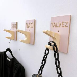 Trio de penduradores | Sim Não Talvez | com pino duplo Ideais para uso comercial em provadores de loja, facilitando a escolha das peças e mostrando todo o cuidado que o lojista moderno tem com seus clientes!