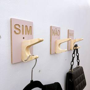 Anúncio se refere à um kit com 9 unidades, sendo: 3 SIM com letras entalhadas 3 NÃO com letras entalhadas 3 TALVEZ com letras entalhadas Tamanho da placa: 10 x 15 cm em MDF laminado Tamanho do pino: 8,5 cm pino superior | 6,0 pino inferior em Pinus ou Virola (dependendo da disponibilidade) Cor: Rosa bebê (rosê clarinho) Letras entalhadas crua Suporta até 4kg com fita dupla face. Suporta até 10kg com parafuso. Pode ser instalado em divisórias de MDF. Produto vai com parafuso e bucha universal.
