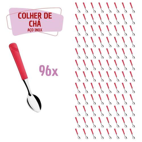 96 Colher de de Chá Vermelho Aço Inox Plástico Luna Casa