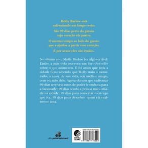 Será que um erro pode definir quem você é? Um romance YA com triângulo amoroso ideal para os fãs de O verão que mudou a minha vida e Para todos os garotos que já amei No último ano, Molly Barlow fez algo terrível: traiu o namorado, Patrick Donnelly, com o irmão dele, Gabe Donnelly. Como se não bastasse a culpa que carrega, sua mãe fez o favor de escrever um livro contando a sua história, que deveria ser um segredo entre elas. O livro se tornou um best-seller e, graças a ele, toda a cidade descobriu o que Molly fez. Massacrada por todos, principalmente por Julia Donnelly, irmã dos meninos, Molly decide viver um ano fora e fugir da espiral de ódio e fofoca que suscitou em Star Lake. De volta à cidade nas férias de verão, ela precisa acertar as contas com aqueles que lhe fizeram mal e tentar resgatar os laços com quem era especial. Agora, Molly terá que enfrentar 99 dias terríveis antes de poder ir embora para a faculdade; 99 dias sendo a pessoa mais odiada na cidade; 99 dias para consertar o estrago que fez; 99 dias para descobrir quem ela realmente ama. Com adaptação confirmada para filme, 99 dias é uma história envolvente e reflexiva de Katie Cotugno, autora best-seller do New York Times , que aborda temas como traição, julgamento, perdão e as consequências de nossos atos.