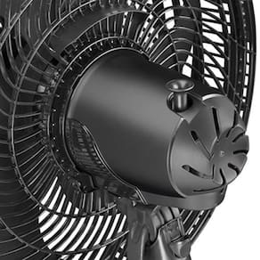Mais benefícios: 3 velocidades, 4 inclinações verticais com a exclusiva inclinação para o chão, oscilação horizontal, grade segura e removível para limpeza, montagem e desmontagem em apenas um clique, porta-fios embutido no modelo de mesa e alça para transportar.