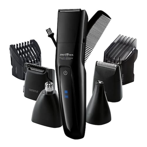 O Aparador de Pelos Britânia Multi Groom BAP03 7 em 1 Bivolt - Preto é um aparelho ideal para você fazer barba, cabelo, bigode, nariz, orelha, costeleta, sobrancelha e corpo no dia a dia com muita praticidade. Este produto acompanha acessórios para corte rente a pele e pincel para limpeza, além de possuir lâminas laváveis, que facilitam a manutenção e higiene dos acessórios.