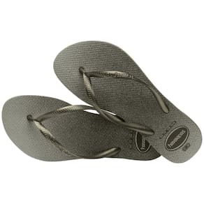 No formato da sandália Slim, queridinha do público, a Slim Gloss tem sola e tiras fininhas, com pitadas espertas de glitter. Para quem curte um visual charmoso e zero básico! Com glitter holográfico na sola e nas tiras, a Havaianas Slim Gloss é o modelo mais indicado para quem não tem medo nenhum de brilhar por aí.
