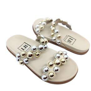 Eleve o seu estilo com a Rasteira Flatform Off White com Pedras, um verdadeiro símbolo de elegância e conforto. Esta rasteira combina o charme do off white com o brilho das pedras douradas e prateadas, proporcionando um visual deslumbrante e uma sensação de luxo a cada passo.