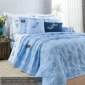Cobre leito confeccionado em percal 200 fios 100% algodão com toque macio , todo bordado com tema de borboletas por toda sua extensão e nos portas travesseiros, trapuntado e matelado com manta de fibras siliconizadas trazendo maior conforto , este produto é composto de 1 cobre leito e acompanha 2 portas travesseiros. Acabamento: Debrum,Bordado Acompanha Porta Travesseiros: 02 Acompanha Rolinho: Não Antipilling: Sim Composição: 100% Algodão Composição do Porta Travesseiro: 100% Algodão Comprimento: 260 cm Comprimento do Porta Travesseiro: 70 cm Cr: Azul Cr Predominante: Azul Enchimento: Poliéster Estampado: Não Itens Inclusos: 1 Cobre Leito, 2 Porta Travesseiros Largura: 280 cm Largura do Porta Travesseiro: 5 cm Linha ou Coleção: Yandra Material Principal: Algodão Peso: 3,500 kg Quantidade de Fios: 200 Fios Quantidade de Peças: 03 Peças Recomendações de Uso, Manutenção e Limpeza: Ao lavar não misturar peças de Cr clara com escura. Escolher um sabão e/ ou amaciante suave. Produtos de limpeza com coloração azul não são recomendações em tecidos coloridos, pois além de manchar, podem desbotar. Dissolver em água o amaciante e o sabão antes de colocar nas peças, nunca coloca-los diretamente nas peças. Usar água abaixo de 40ºc, água quente pode encolher o tecido. Não secar em máquina. A secagem das peças confeccionadas com cores claras e escuras devem ser estendidas sempre com as cores claras para cima, para evitar manchas. Produtos a base de cloro, como água sanitária, água de lavadeira, atacam o corante e desbotam o tecido. Peças 100% algodão não devem ser lavadas com peças que contém poliéster pois podem soltar bolinhas e estas se depositam sobre as fibras naturais. Tamanho: Tamanho da Cama: King Tipo de Tecido: Algodão