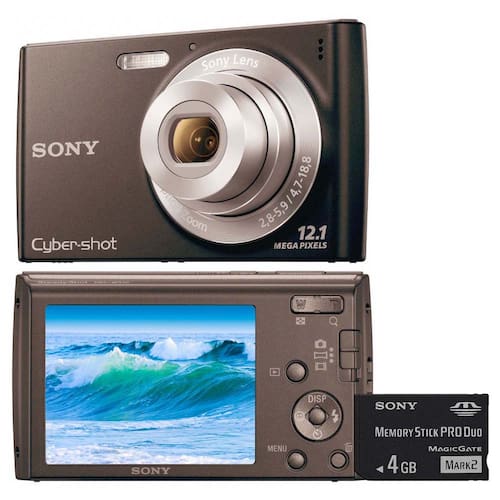 Câmera Digital Sony Cyber-shot DSC-W510/B Preta c/ 12.1 MP, LCD TFT 2.7", Foto Panorâmica, Smile Shutter e Face Detection + Memory Stick de 4GB