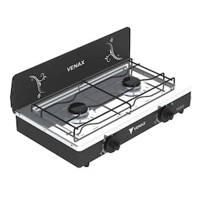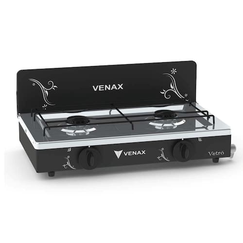 Fogão Portátil a Gás 2 Bocas Venax Flamalar Vetrô com Tampa - Preto